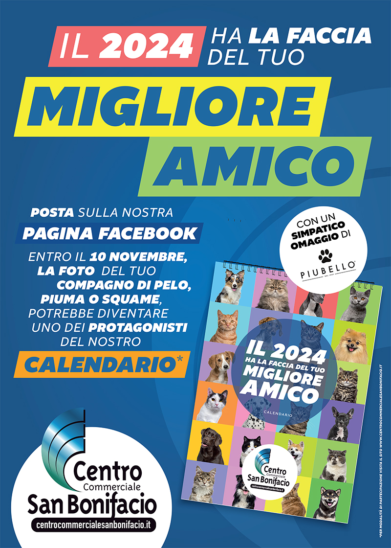 Il 2026 HA LA FACCIA DEL TUO MIGLIORE AMICO – CONTEST FOTOGRAFICO CALENDARIO 2026 CENTRO COMMERCIALE SAN BONIFACIO