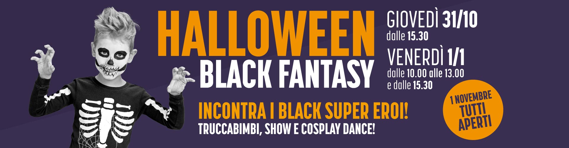 Due date imperdibili: il 31 ottobre al pomeriggio + il 1° novembre sia al mattino che al pomeriggio.