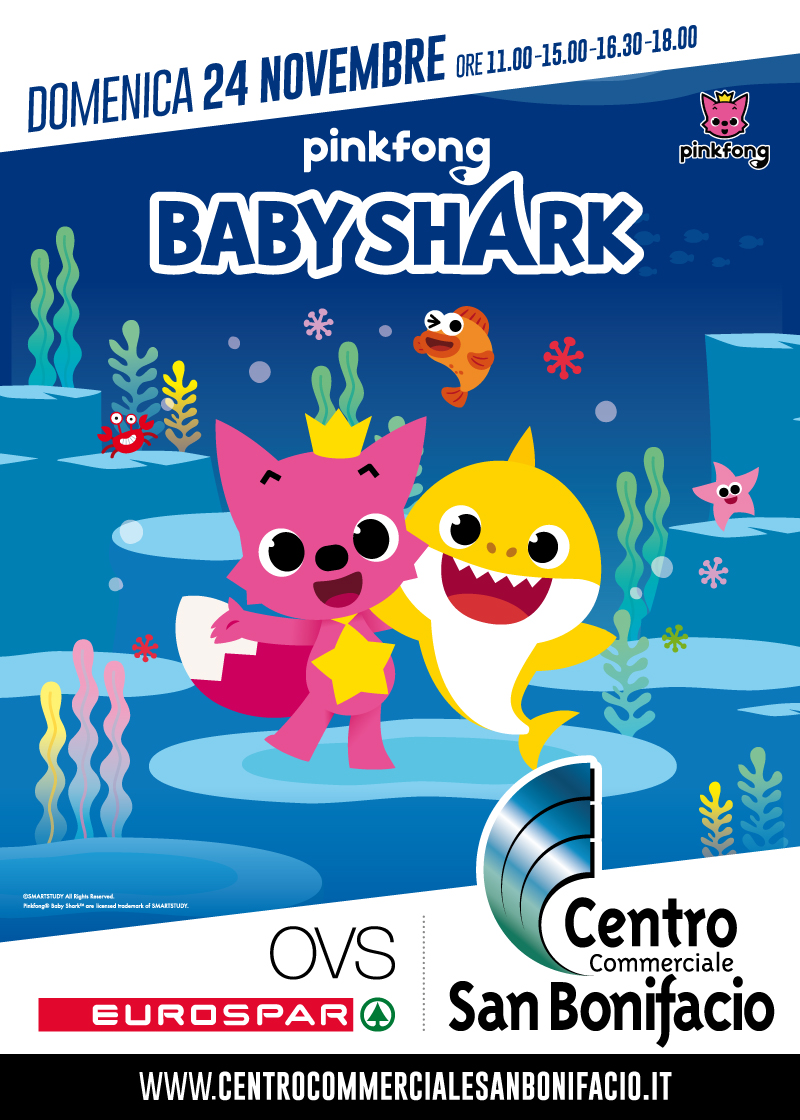 Domenica 24 Novembre Pinkfong e Baby Shark vi aspettano alle ore 11.00 - 15.00 - 16.30 - 18.00